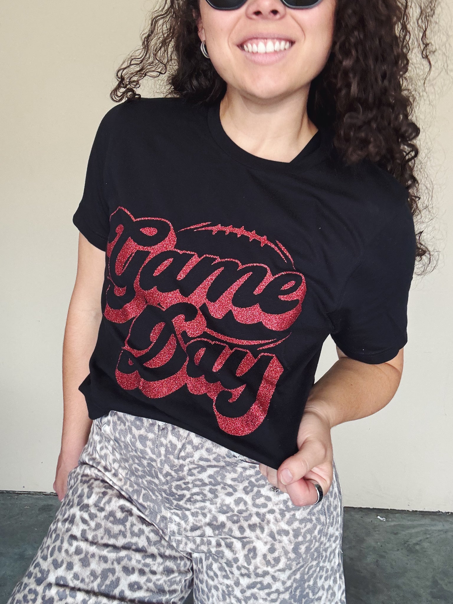 GAME DAY FOOTBALL GLITTER GRAPHIC T SHIRTS