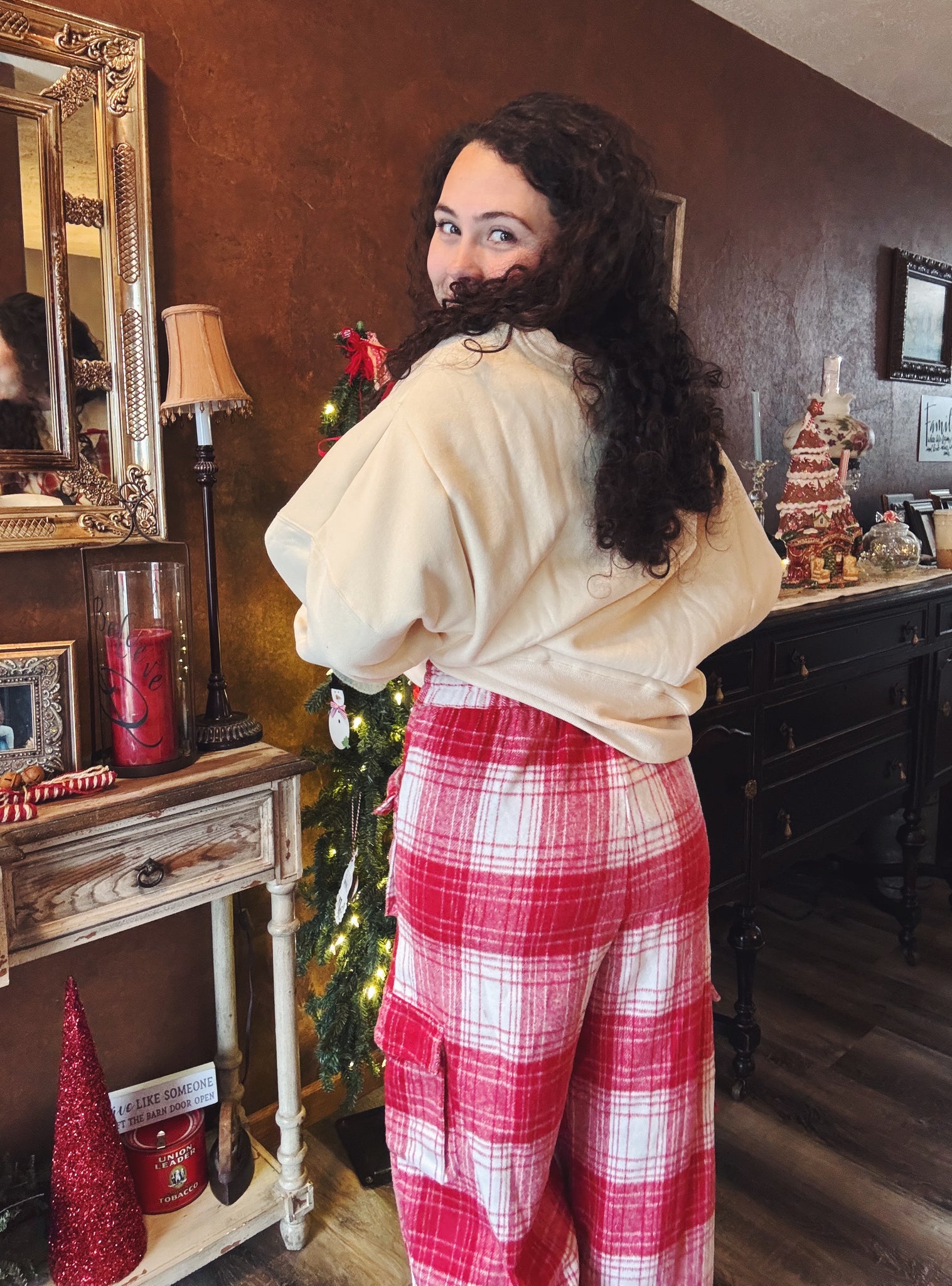 Fleece plaid balloon pants with drawstring tie! Perfect for a comfy, cozy Holiday look!