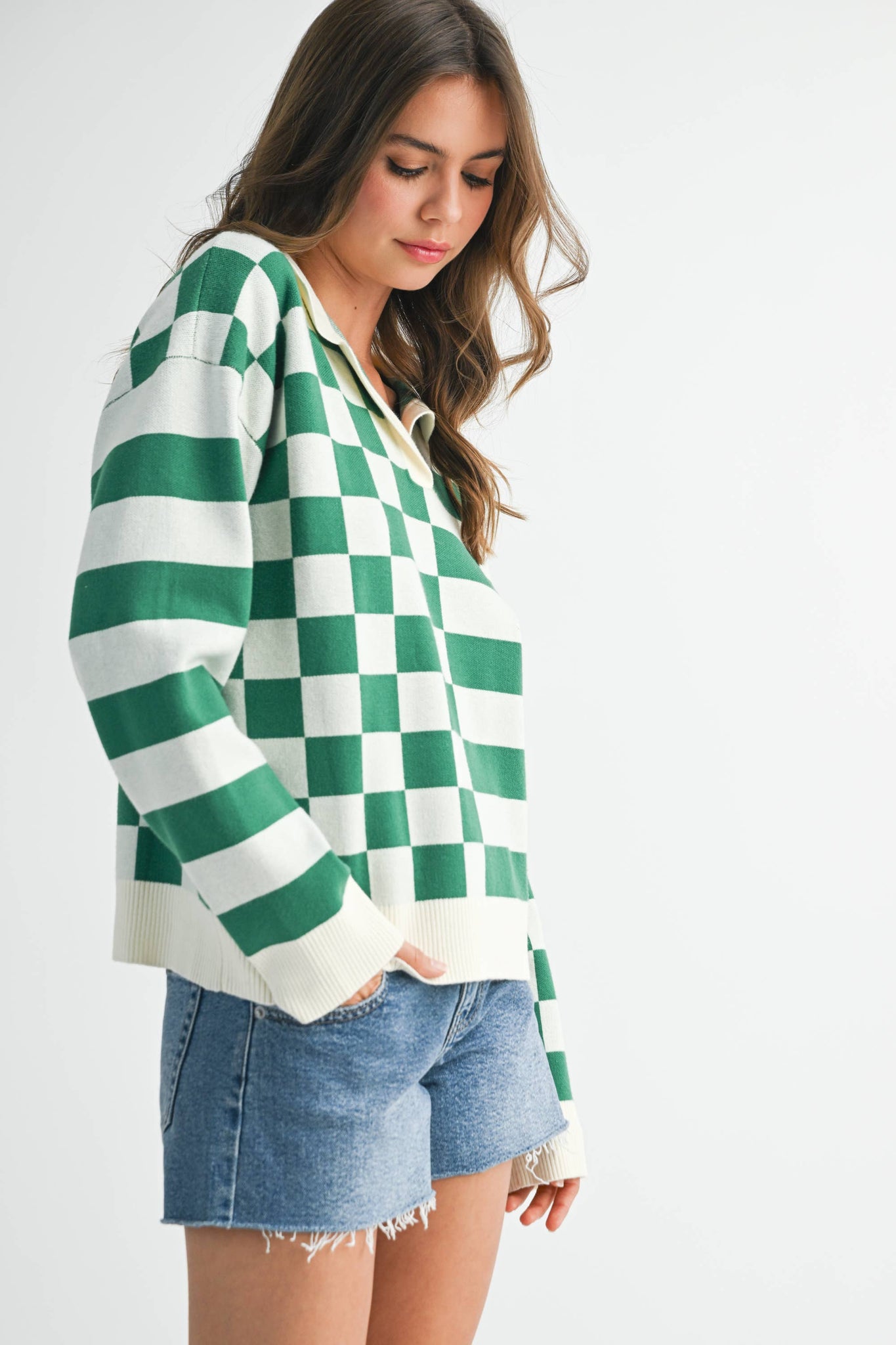 Bethany sweater is a perfect blend of classic and trendy, featuring a henley neck and a unique combination of stripe and checkered detailing. The soft, high-quality yarn creates a comfortable and warm fit, making it perfect for casual everyday wear. She is sure to be a staple in your wardrobe. Pair it with jeans and sneakers for a chic and casual outfit, or layer it under a blazer for a more polished look.